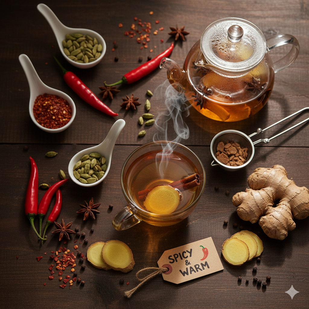 - 실천: 식사 시 고추, 후추, 생강, 마늘 등 매운 향신료를 첨가합니다. (단, 과도한 캡사이신은 위에 무리가 갈 수 있으니 주의합니다.)