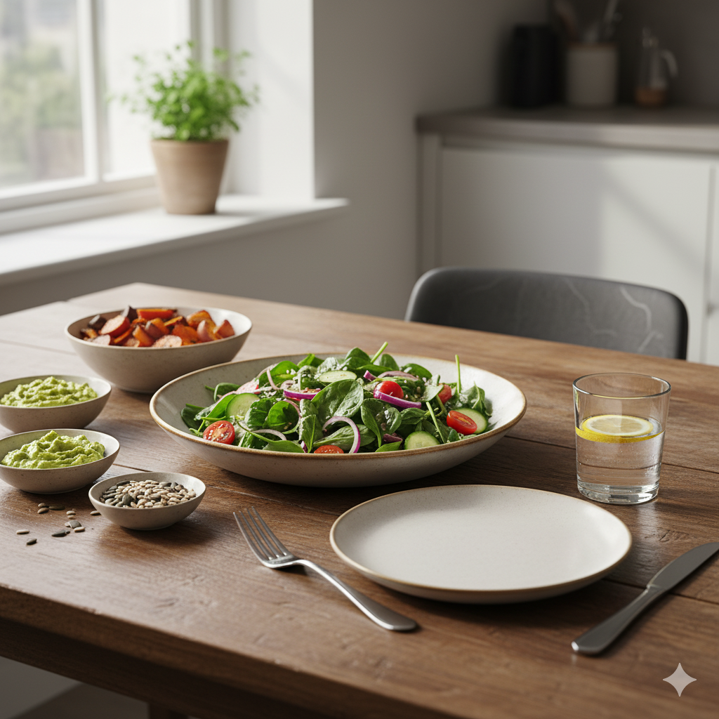 - 실천: 식사 시작과 함께 샐러드, 나물 반찬, 생채소 등 식이섬유가 풍부한 음식을 가장 먼저 섭취합니다.