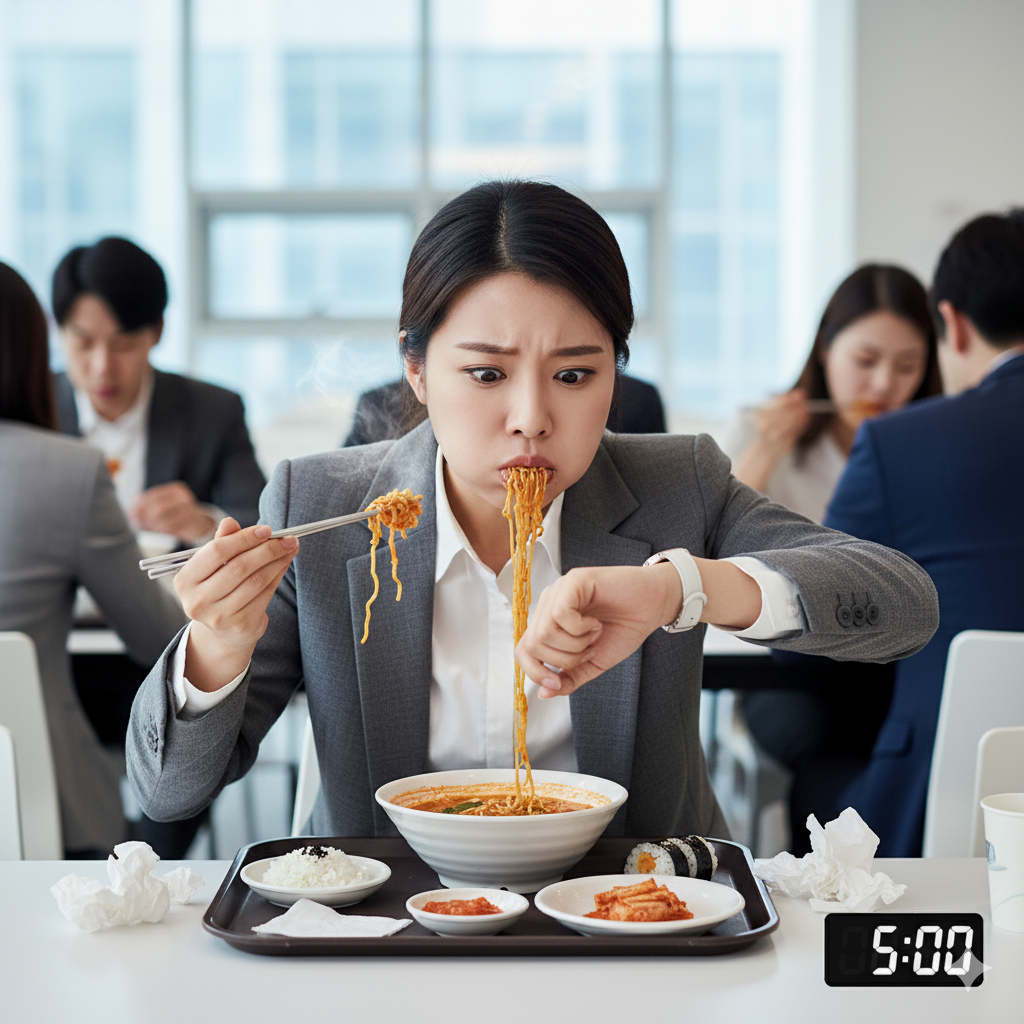 💡안녕하세요! 점심시간에 쫓겨 밥을 마치 마시듯 먹고 있지는 않나요? 직장인의 '5분 컷' 식사 습관은 단순히 소화 불량을 넘어 체중 증가, 위장 장애, 그리고 폭식 습관을 유발하는 **'독(毒)'**입니다. 우리의 뇌가 **'배부름 신호'**를 인식하는 데는 최소 20분이 걸리기 때문입니다.