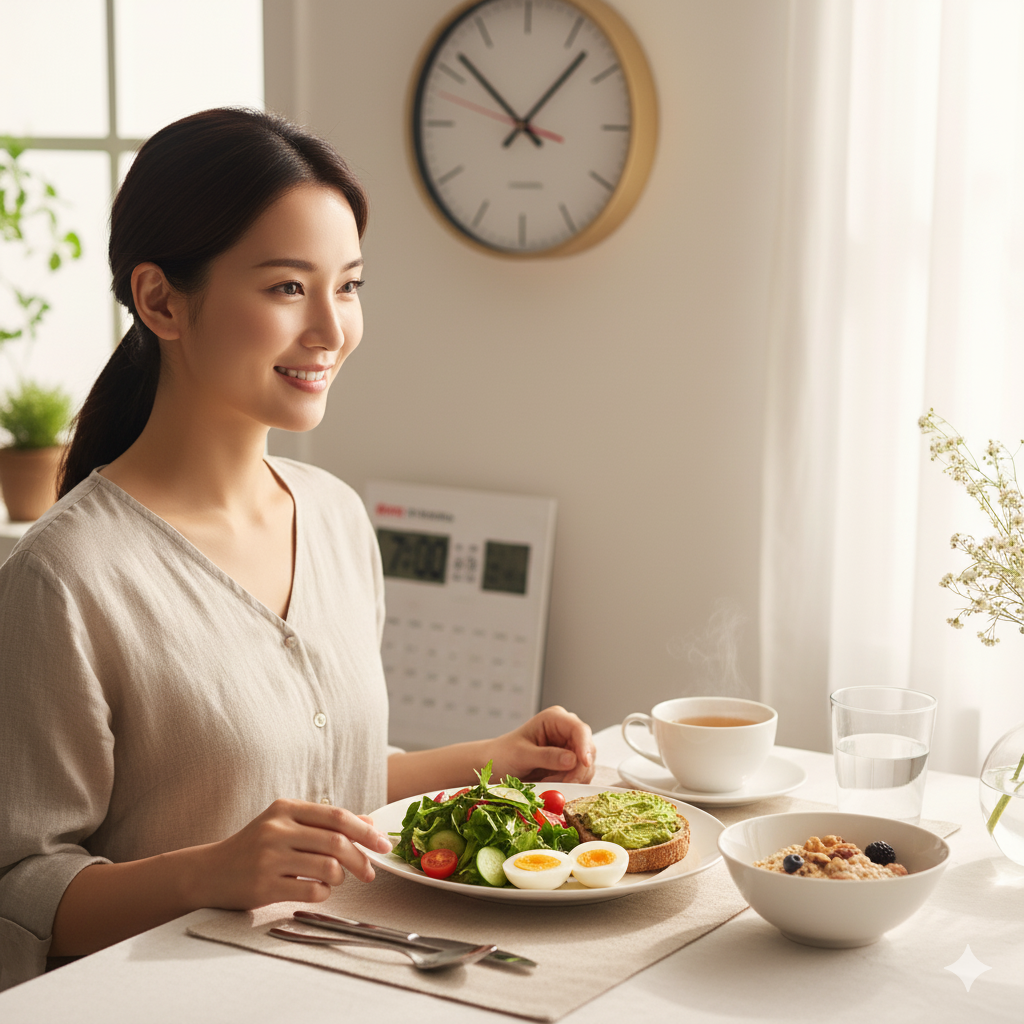 - 개선 팁: 매 끼니 **단백질, 건강한 지방, 식이섬유(통곡물, 채소)**를 포함하여 영양 균형을 맞추세요. 식사 시간뿐만 아니라 **'질 좋은 영양분'**을 꾸준히 공급하는 것이 무너진 대사 시계를 회복하고 기초대사율을 높이는 가장 확실한 길입니다.